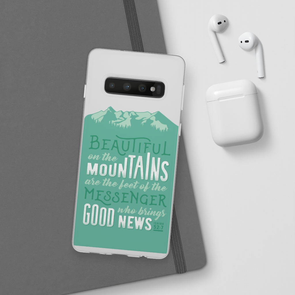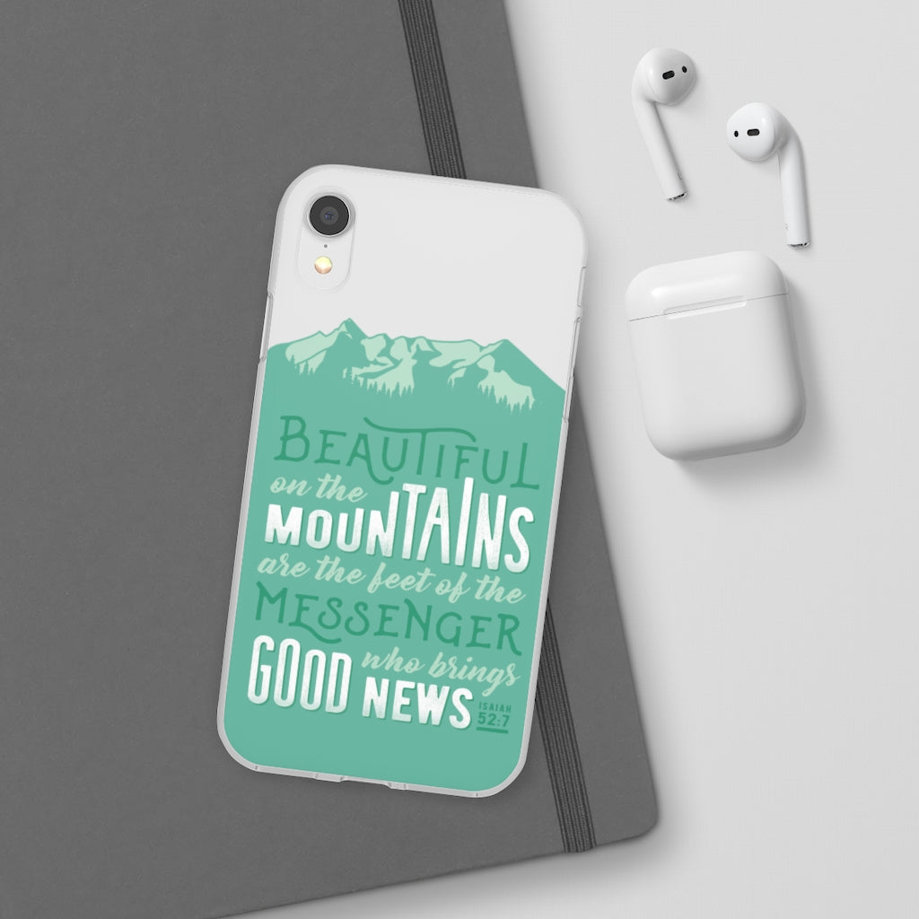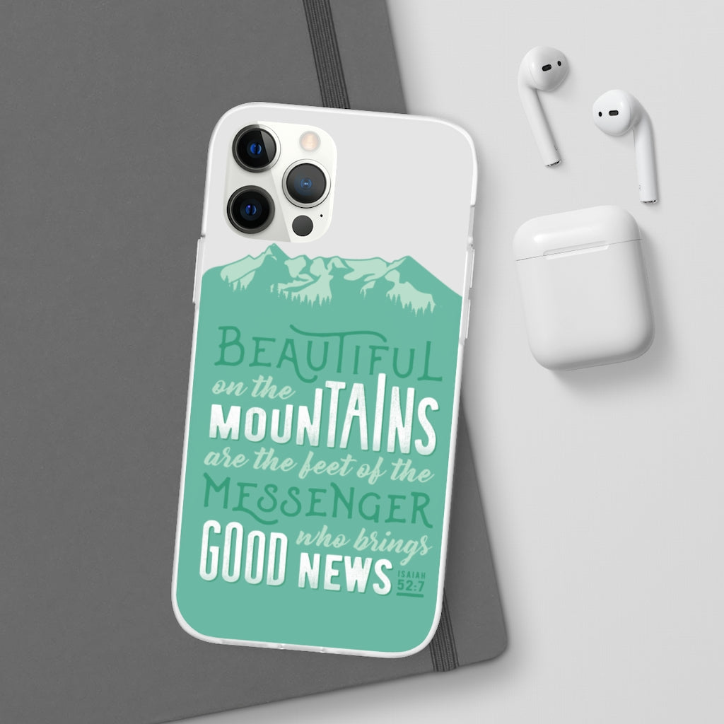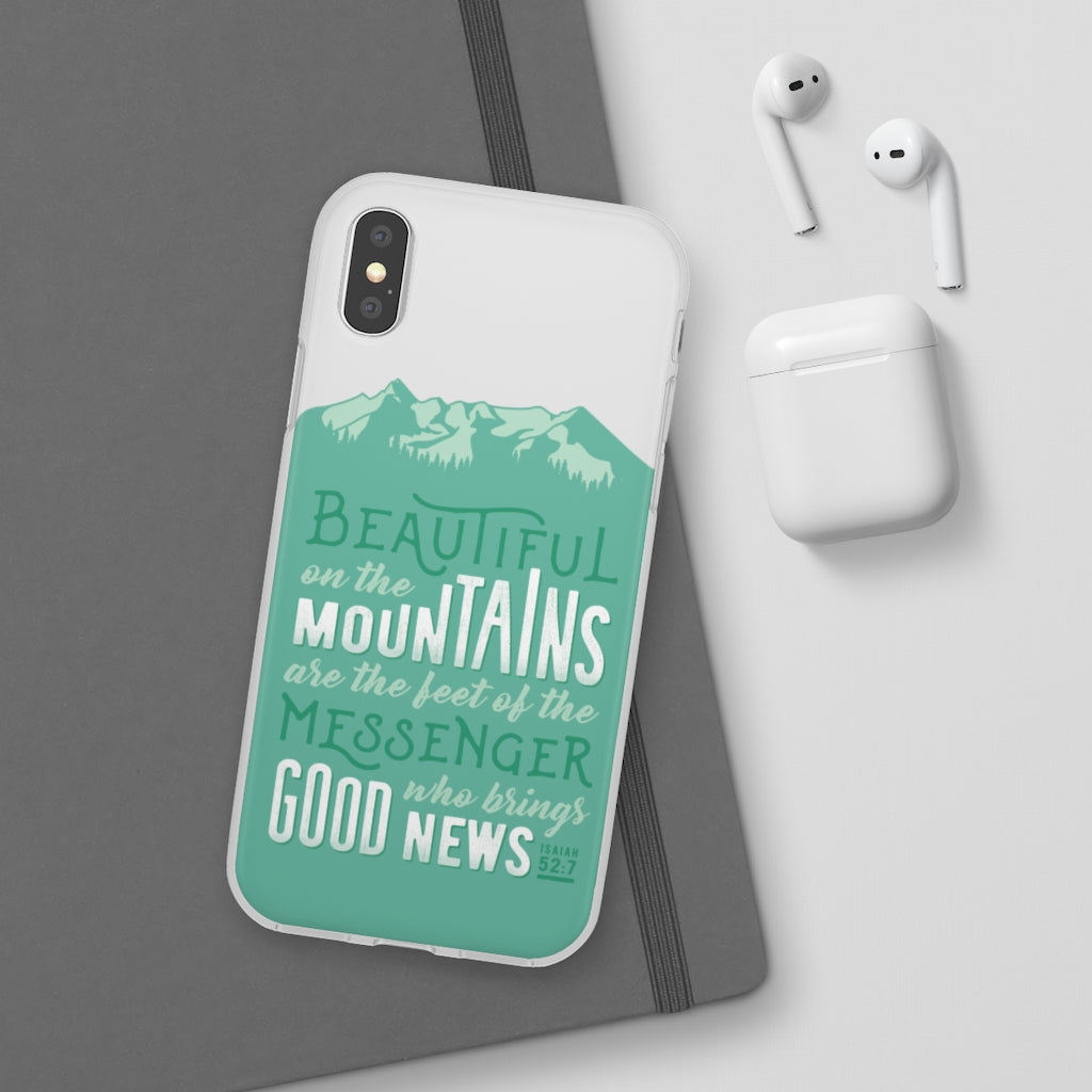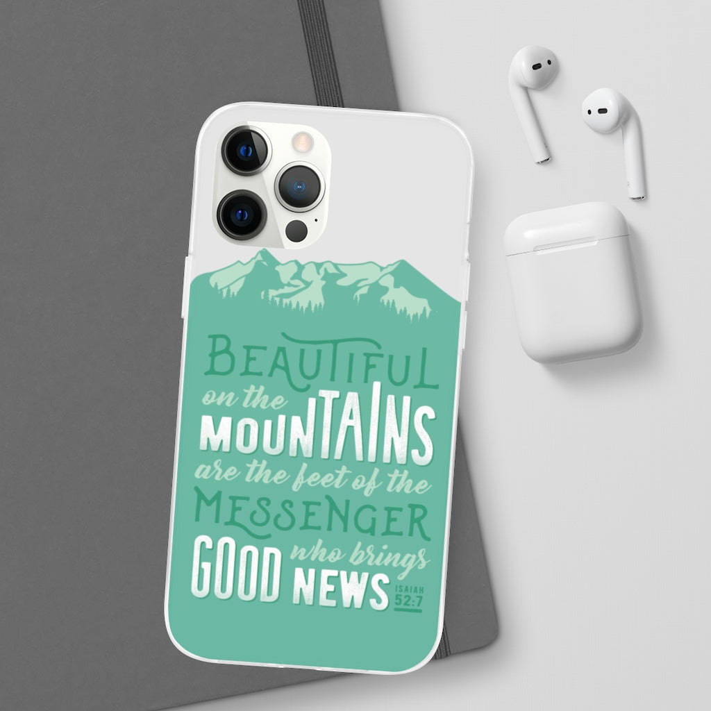 The Flexi Case has an extraordinary Clear TPU shell delivering frosty transparent impact resistance, with a sweet reminder of Isaiah 52:7!