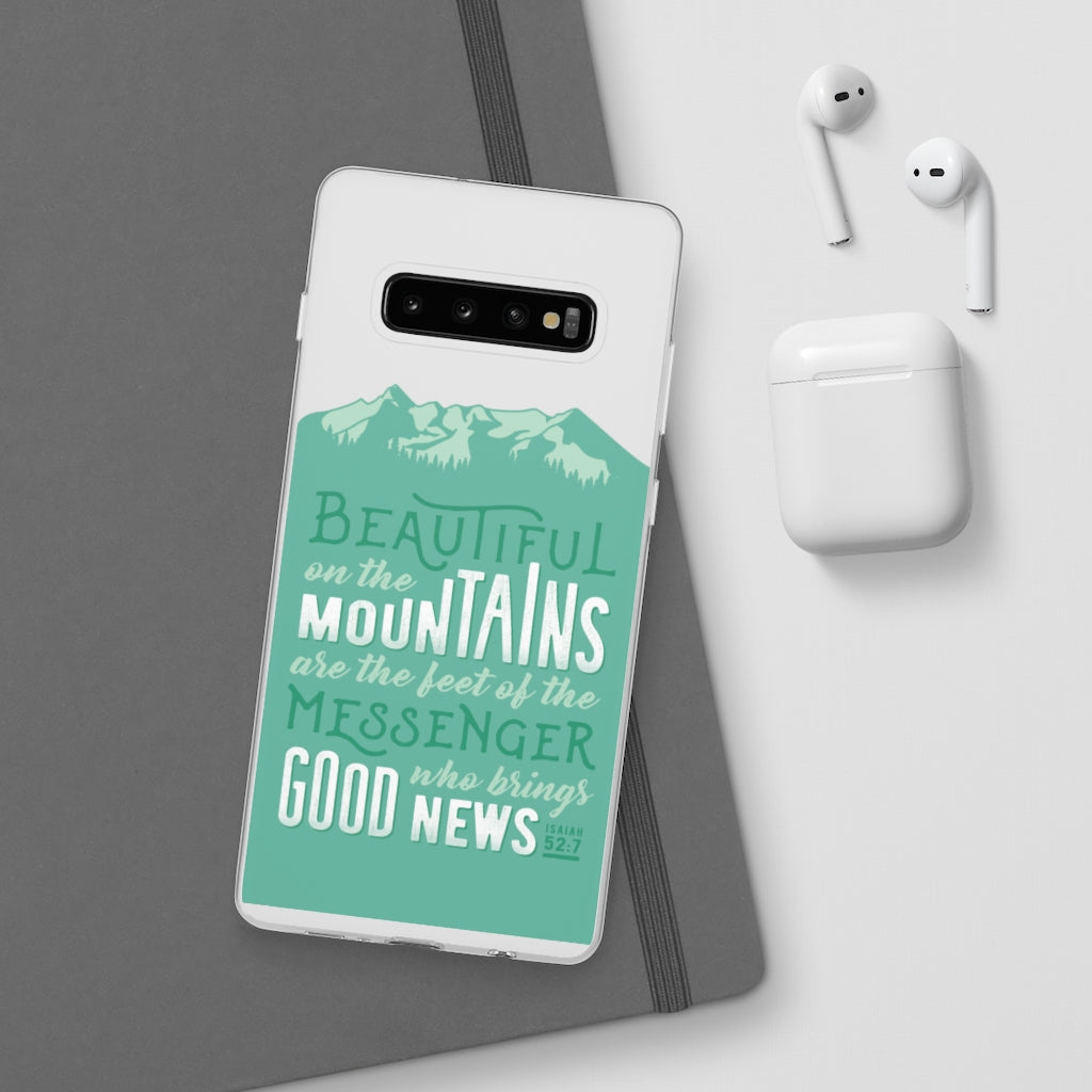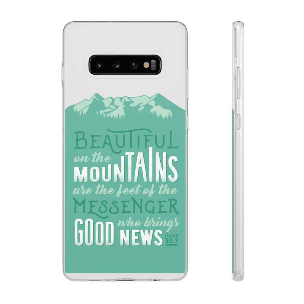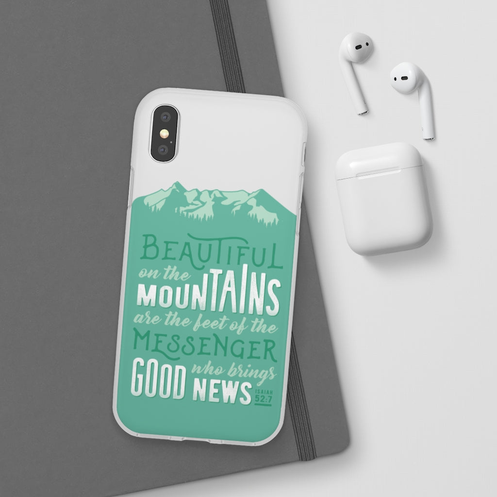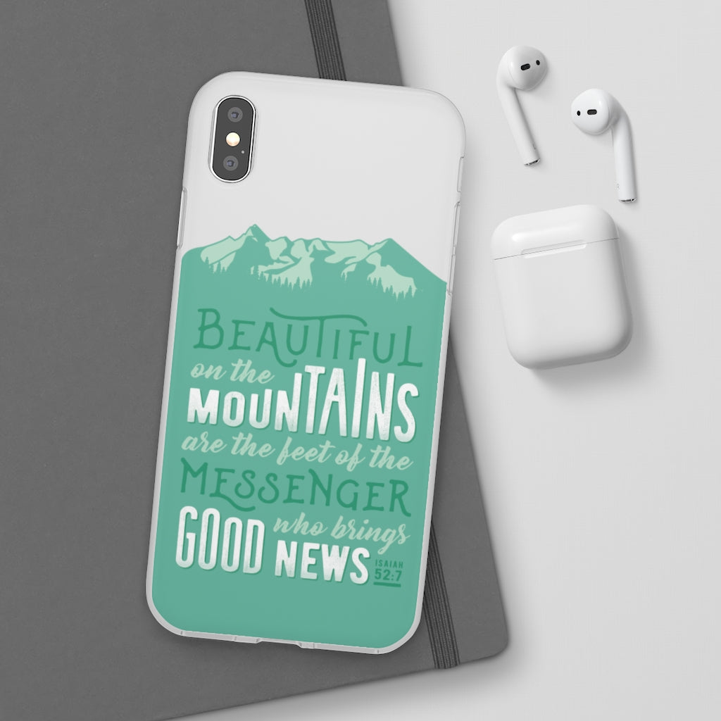 The Flexi Case has an extraordinary Clear TPU shell delivering frosty transparent impact resistance, with a sweet reminder of Isaiah 52:7!