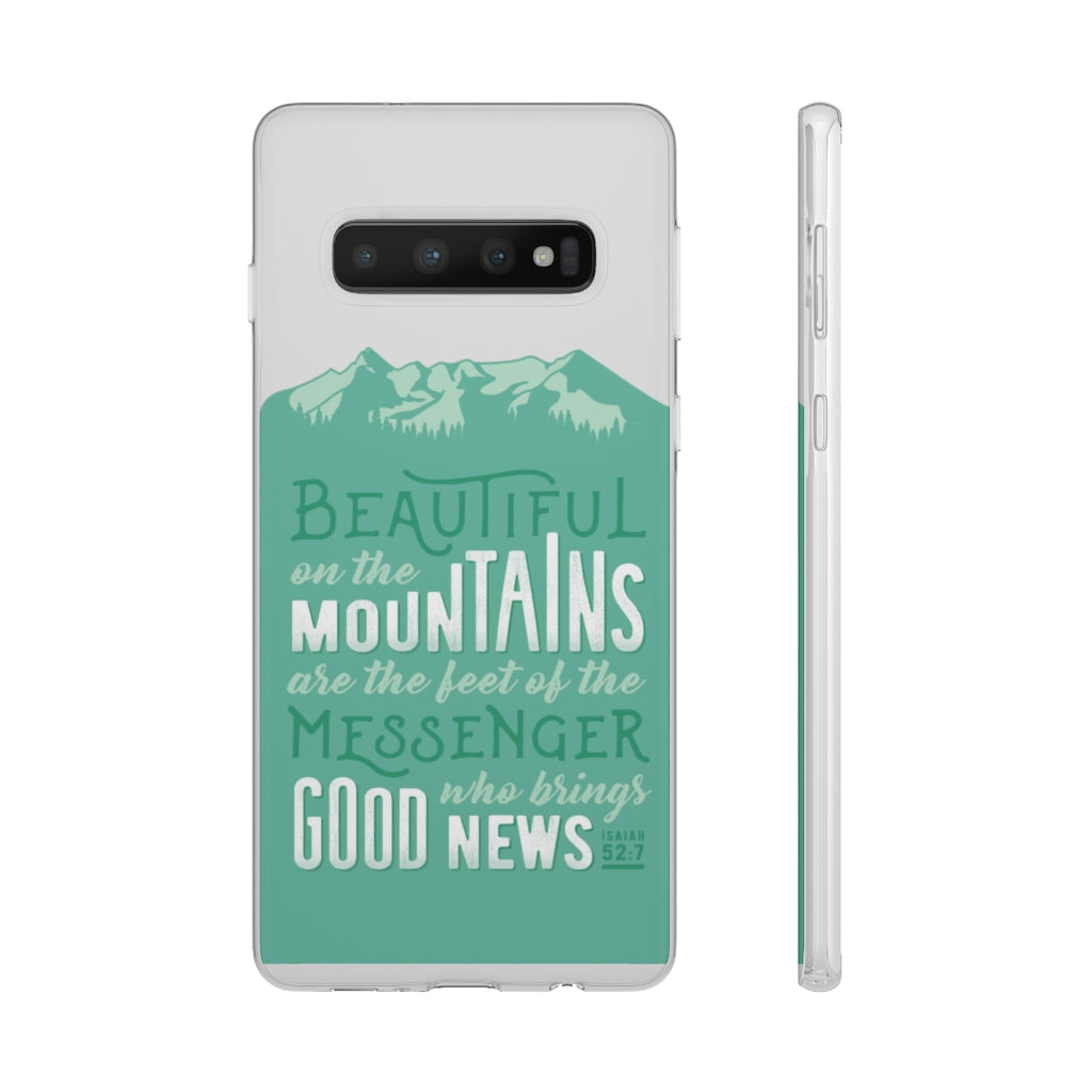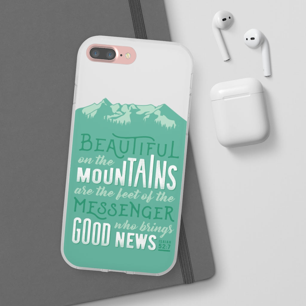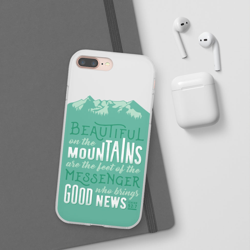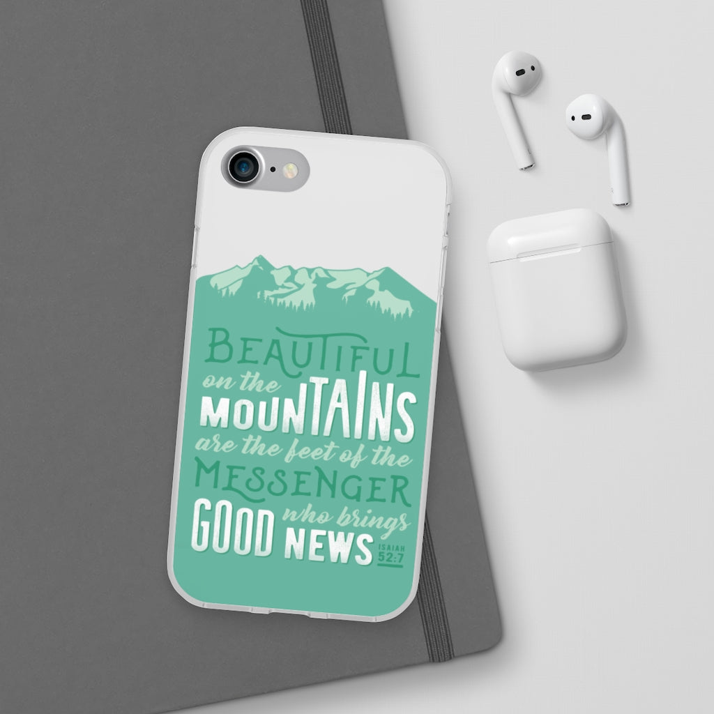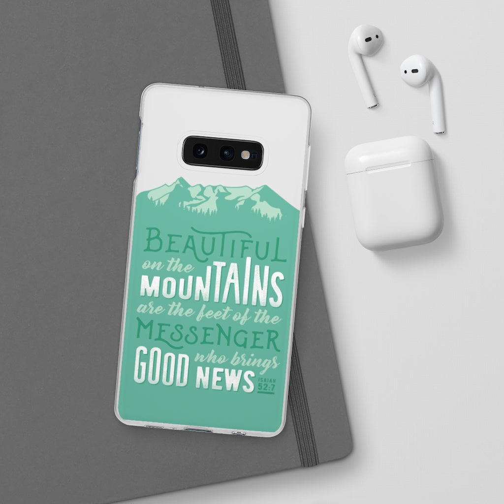 The Flexi Case has an extraordinary Clear TPU shell delivering frosty transparent impact resistance, with a sweet reminder of Isaiah 52:7!